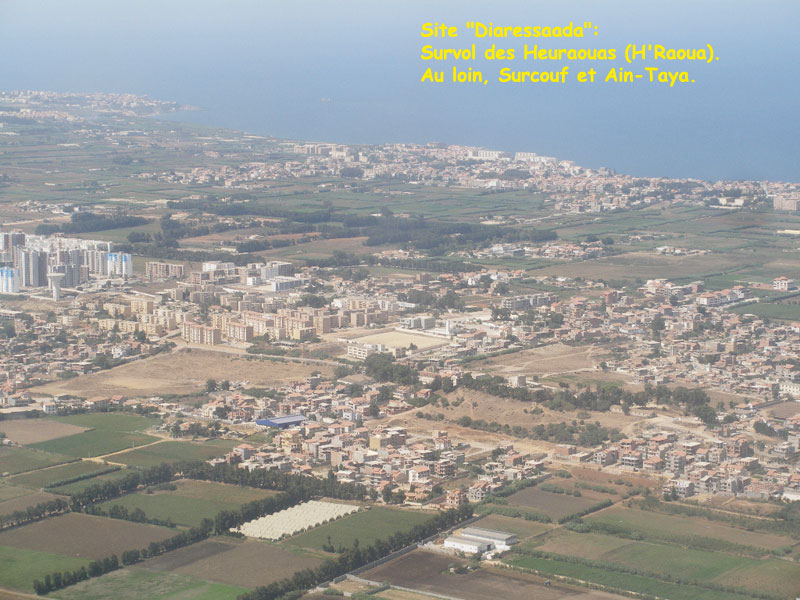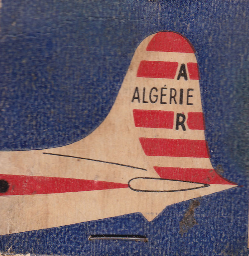 Décollage à 13h35 (prévu 13h15) ce 30 août 2012, de Toulouse-Blagnac, vol Air-Algérie AH1045, avec un Boeing 737. 20 minutes de retard au décollage pour se retrouver très vite au-dessus des nuages jusqu'au survol de la Méditerranée. Vol entre 11.000m et 12.000m, à 700/800 km/h, température extérieure de -55°C. Après les îles Baléares et Mallorca, arrivée en vue de la baie d'Alger avec le Cap Matifou. L'avion passe alors au dessus de Reghaïa, laissant voir Jean-Bart et les plages de Surcouf et d'Alma-Marine. Embouchure de l'oued Reghaïa, survol des Heuraouas puis de Rouïba avant d'atterrir à 13h45, heure locale. Les 20 minutes de retard au décollage ont été rattrapées. C'est la première fois que j'empruntais un vol Air-Algérie, et je dois dire que tout fut très correct, largement du niveau d'Air-France; et avec du vin pour le déjeuner! Par contre il y avait peu de monde à bord; ce ne sera pas le cas au retour. Dernier petit clin d'oeil, ces allumettes d'Air-Algérie, mais la Compagnie française d'alors.